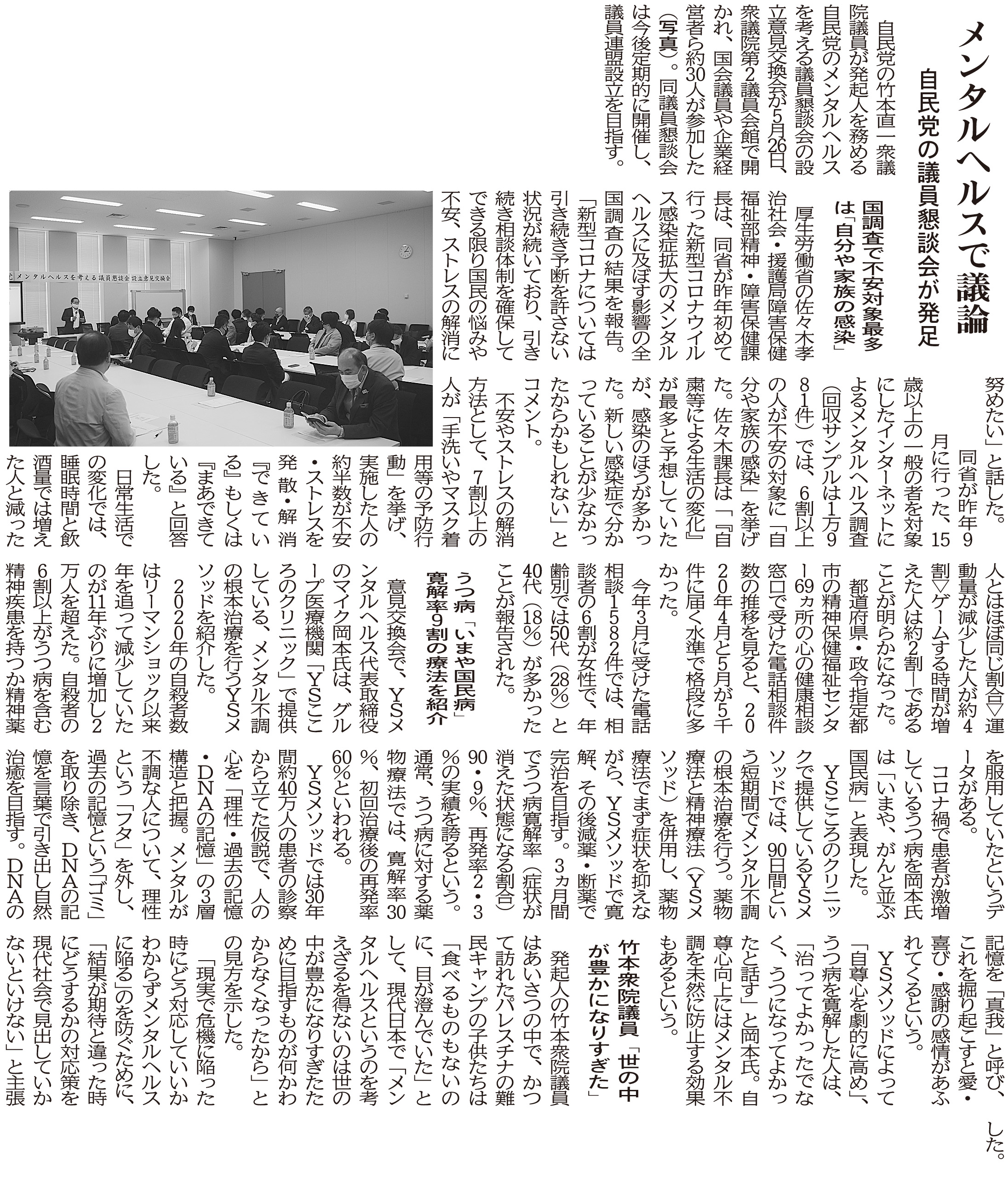 先日の『自民党のメンタルヘルスを考える議員懇談会意見交換会』に病院新聞から取材があり、