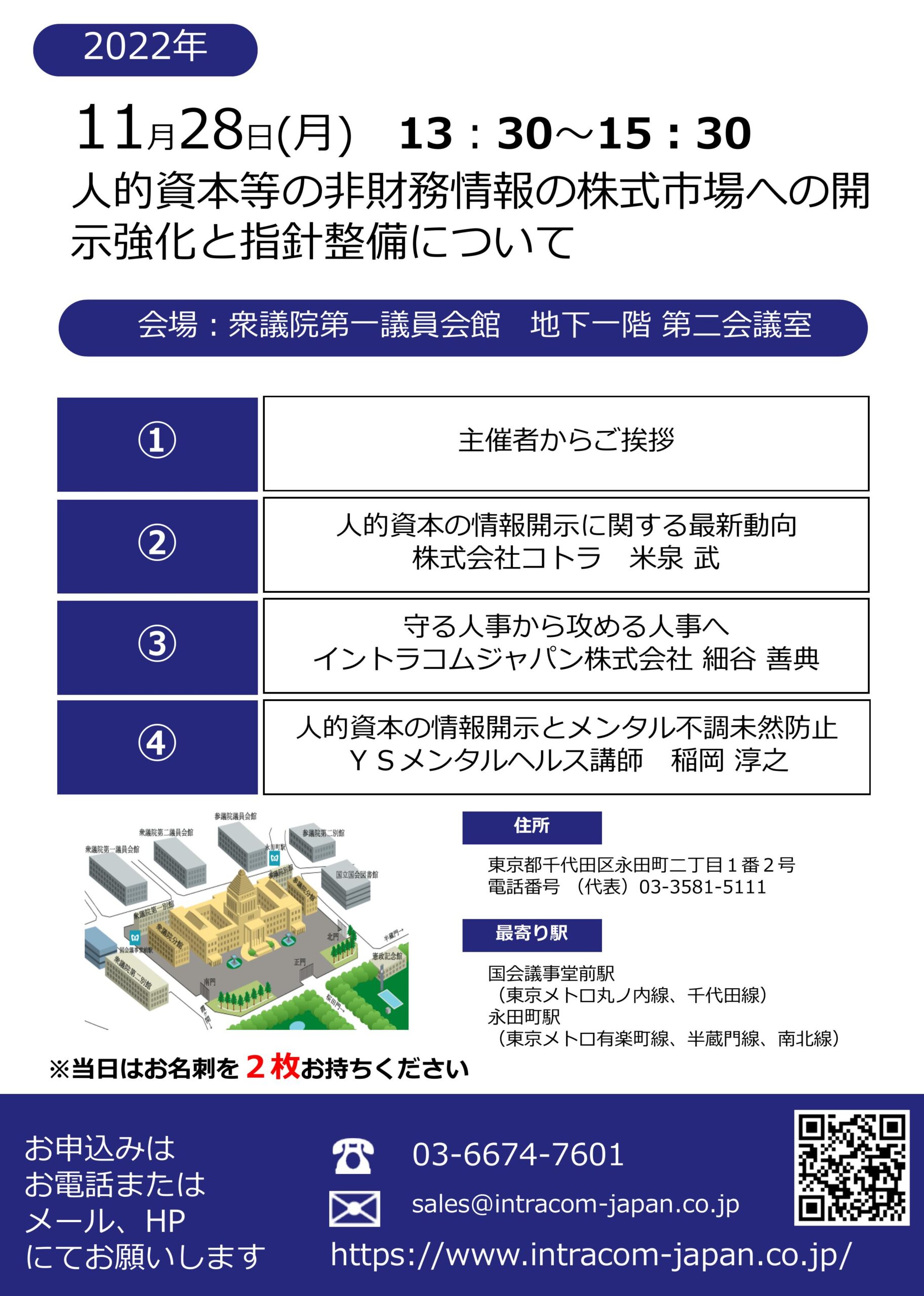 衆議院会館で有識者として講演!! 2022.11.172022.12.23 当社の講師が登壇致します!! 企業の総務、人事の方、是非、ご参加下さいませ。 お申込みは下記、HPからお願い致します。 ↓ お申込みは終了しました。 ありがとうございます。